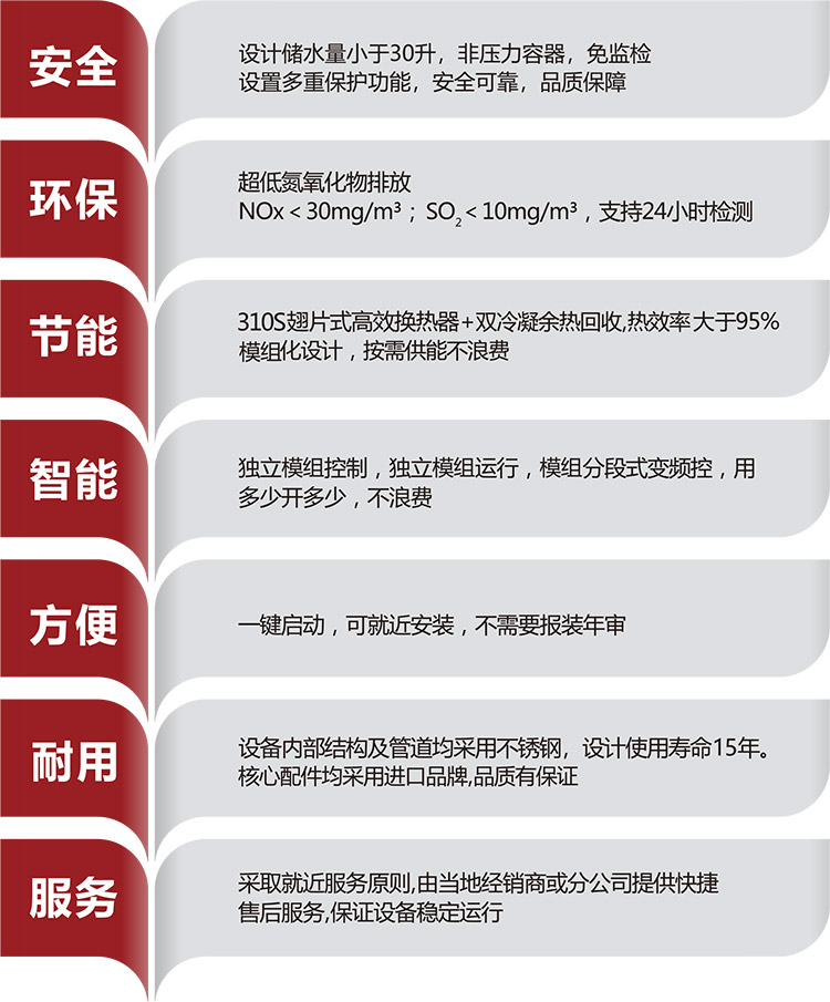 6、綠色環(huán)保,使用清潔天然氣或液化氣作為主要能源,排放遠(yuǎn)低于國(guó)家規(guī)定排放標(biāo)準(zhǔn),有益于環(huán)境保護(hù)。